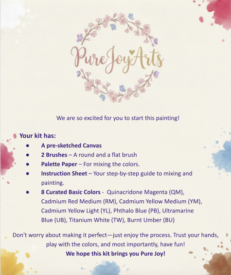 No experience needed. Each Pure Joy Arts paint kit includes everything you need, including instructions to mix colors and paint by layers.